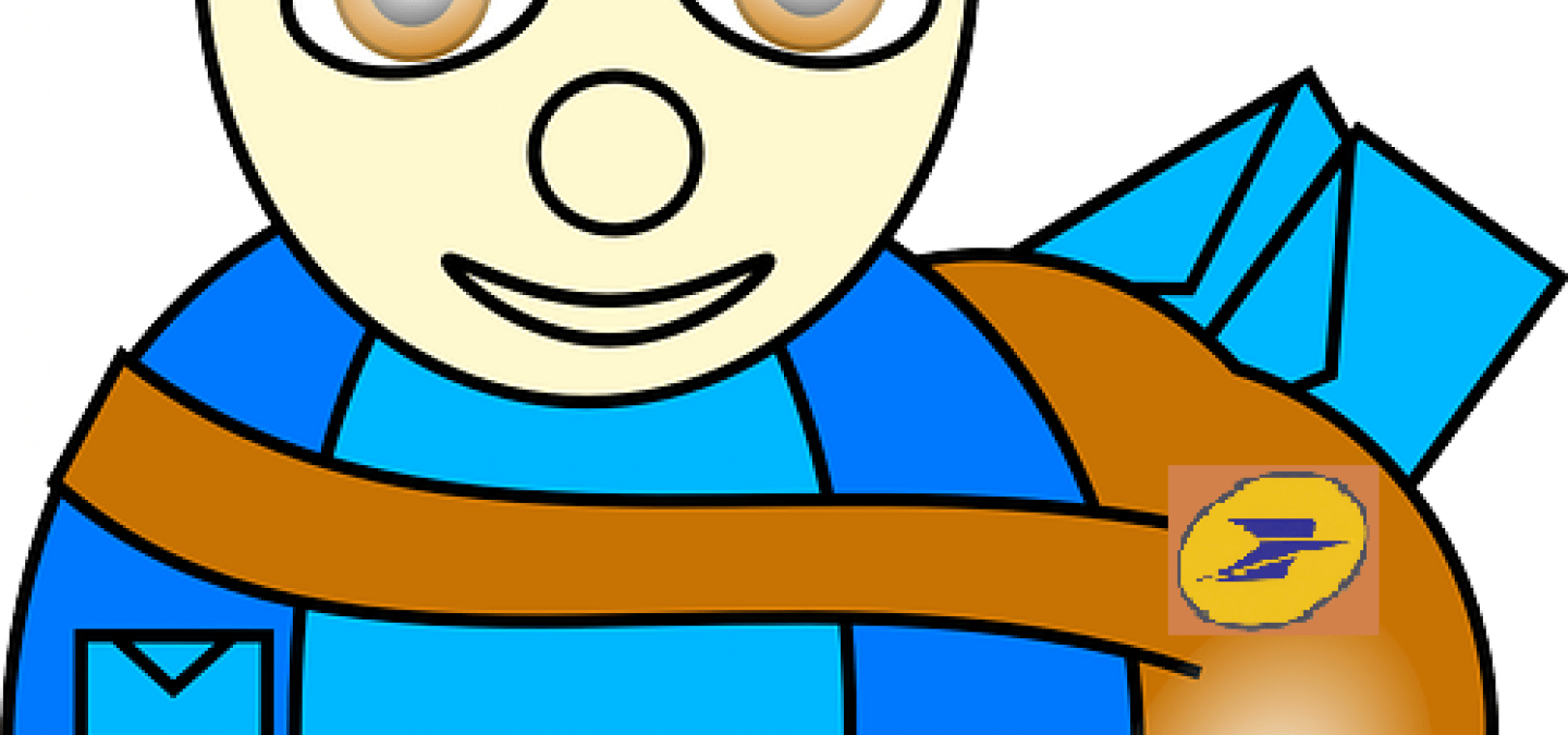 Figure 3 - $«$ Ding, ding, dong le facteur n’est pas passé ... $»$ 1. Le cartable du facteur ${\color{red}K}$ contient ${\color{blue}a}$ cartes postales pour le destinataire ${\color{blue}A}$ et ${\color{brown}b}$ cartes postales pour le destinataire ${\color{brown}B}$. Le timbre coûte ${\color{red}k}$ euros pour que l'entreprise rémunère le facteur.